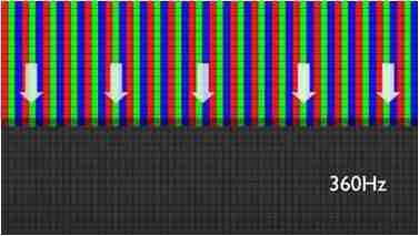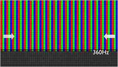 传统液晶驱动是从左到右单向进行,,在画面更新速度愈来越愈快的情况下,,,位于驱动线路末端的右下角区域,,,,画素的闸极来不及在短时间内获得足够电压,,,,无法显示出正确的颜色资讯。。。 |