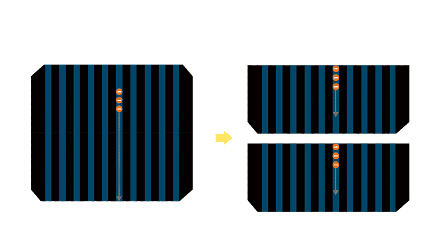 • 多条电极栅结构,,可有效降低外力对于电池的影响,,,限制电池隐裂 (Micro-cracks) 范围,,,,防止电流传输路径 (Current distribution) 之损坏进一步扩大。。
