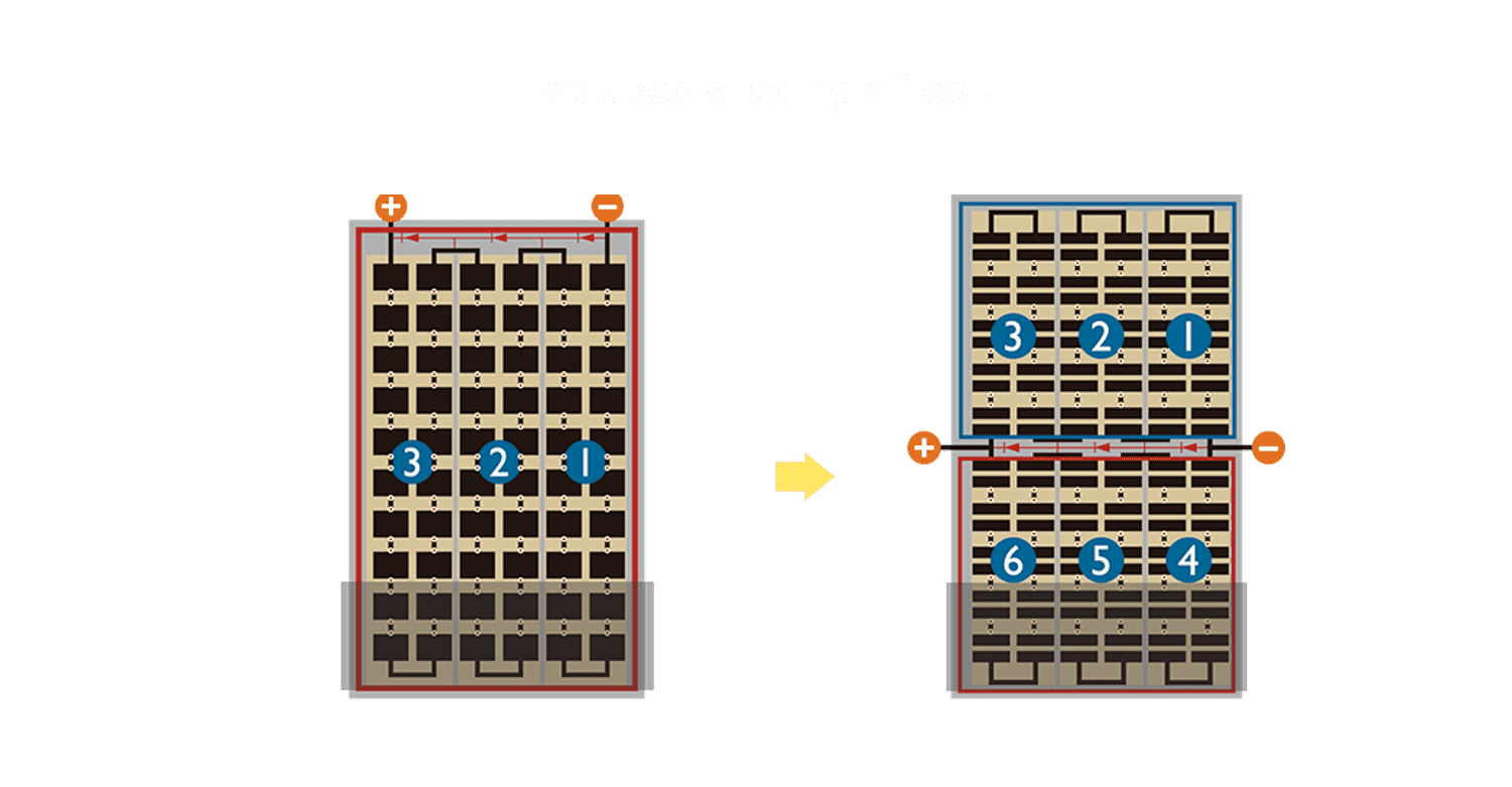 • 结合半切电池,,,,降低遮阴影响、、、、提升模组抗隐裂能力、、、并减少电阻损耗,,进一步提升模组发电效能。。