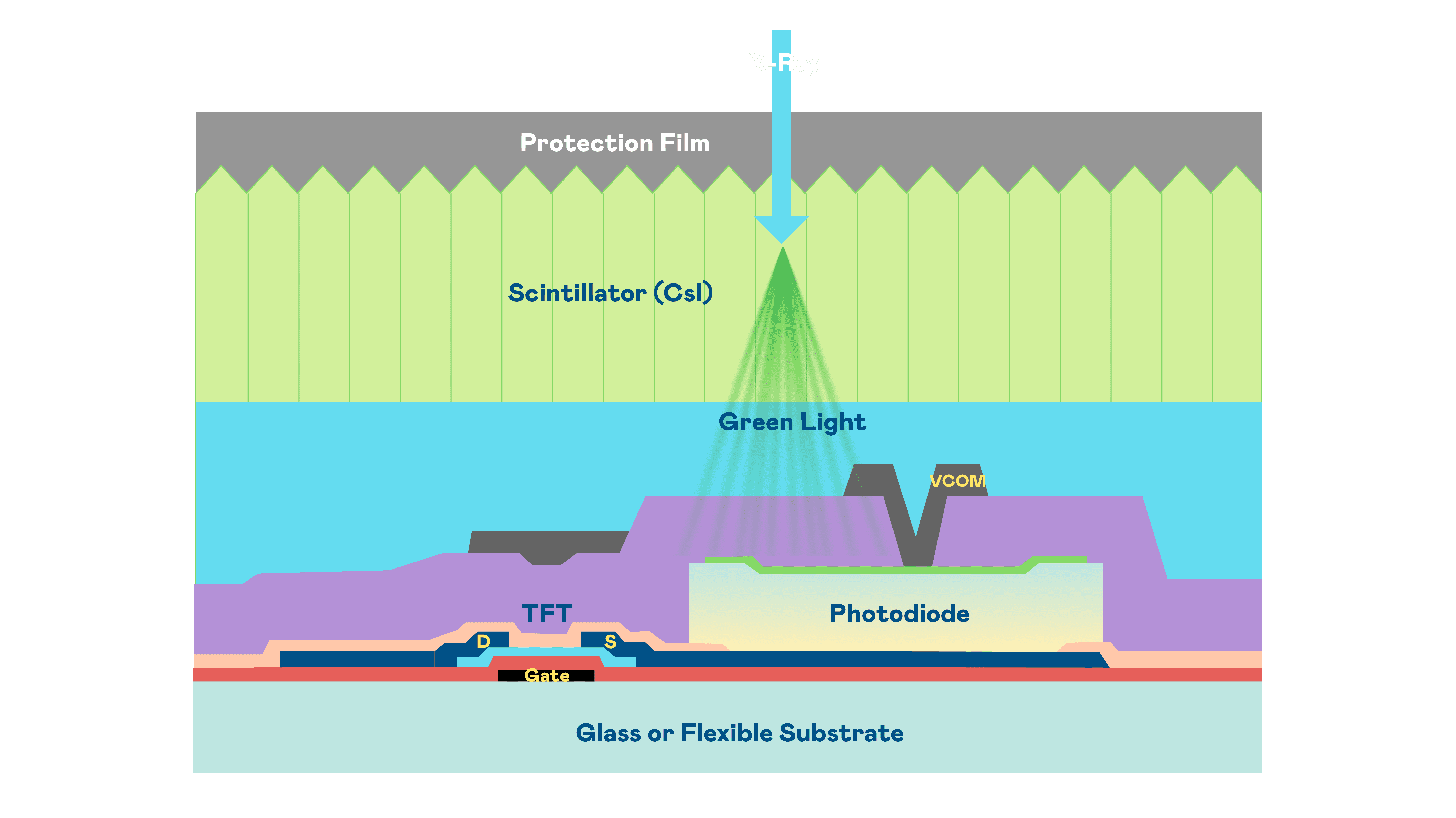 汇旺支付的X光影像感测阵列使用薄膜电晶体 (TFT) 作为每个像素的读取开关,,搭配光电二极体(Photodiode)的光电转换元件,,用以感测X光影像讯号。。